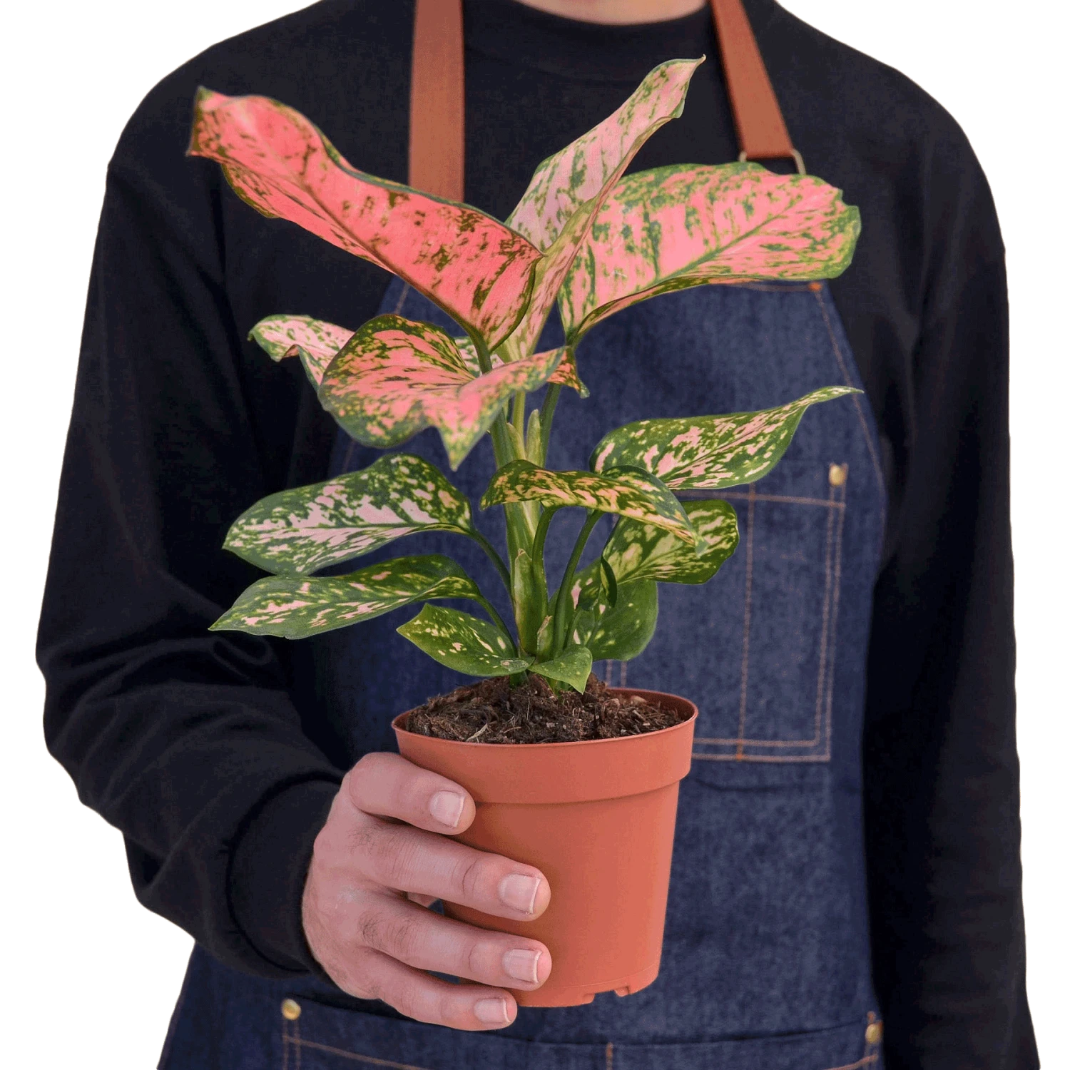 This Chinese Evergreen Lady Valentine comes with large pink splashes of color on the center of leaves. The Chinese Evergreen also known as Aglaonema, is an easy plant to grow and care for. Native to Asia it tolerates almost any indoor condition. The larger leaves come with unique patterns that work with all types of planters!