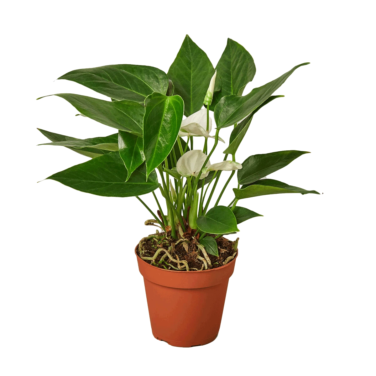 These exotic houseplants have glossy heart-shaped leaves with a beautiful bloom that comes in a large array of colors. They can bloom all year long with enough light and water. The Anthurium originated in the South American rain forest so they thrive in high-humidity environments with a decent amount of shade.