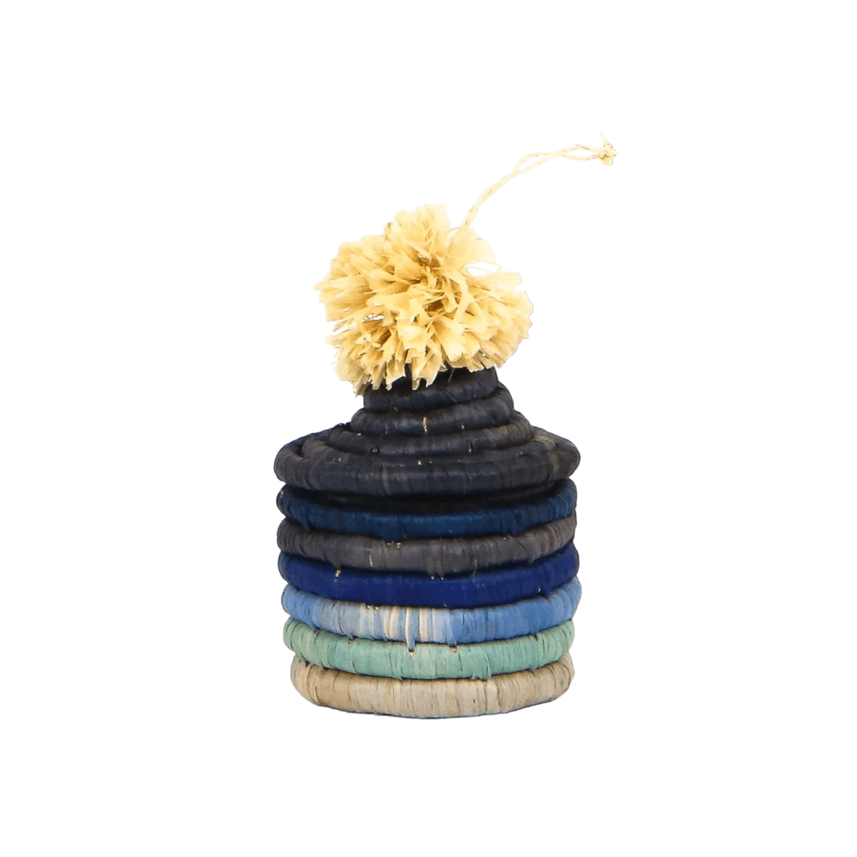 Bring festive cheer to your holiday decor with our Blue Gradient Pom Pom Basket Holiday Ornament! This imaginative, colorful, and sentimental raffia ornament makes decorating fun and adds a globally-inspired decorative flair with its all natural fiber design. Plus, it was ethically and fairly made by groups of women in Uganda – win-win!