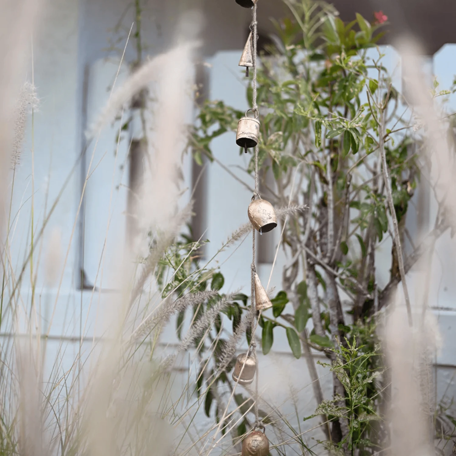 This Ekaj Rustic Bell Hanging Garland is the perfect accent to any indoor or outdoor space. Handcrafted by artisans from at-risk communities, each bell is uniquely tuned and adds a rustic charm to any room. Whether you prefer a minimalistic, maximalist, artsy, boho, rustic farmhouse, coastal, or western look, this hand-tuned garland is perfect for any space.