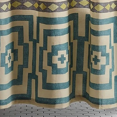 Hypnotic was inspired by a vintage African textile Justina spotted at a market in Paris. The geometric Greek key-like pattern makes this shower curtain feel classic and ripe for layering to complete the global-modern look.