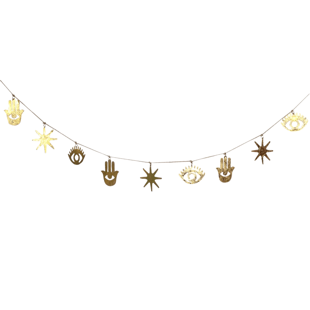 Liven up your home with this unique Iron Hamsa + Evil Eye Wall Hanging from My Urban Crafts! This Bohemian-inspired artwork showcases 12 icon pendants on an extra-long jute string, creating a celestial look with modern flair. Add a touch of the sky indoors and let your space sparkle with stylishness!