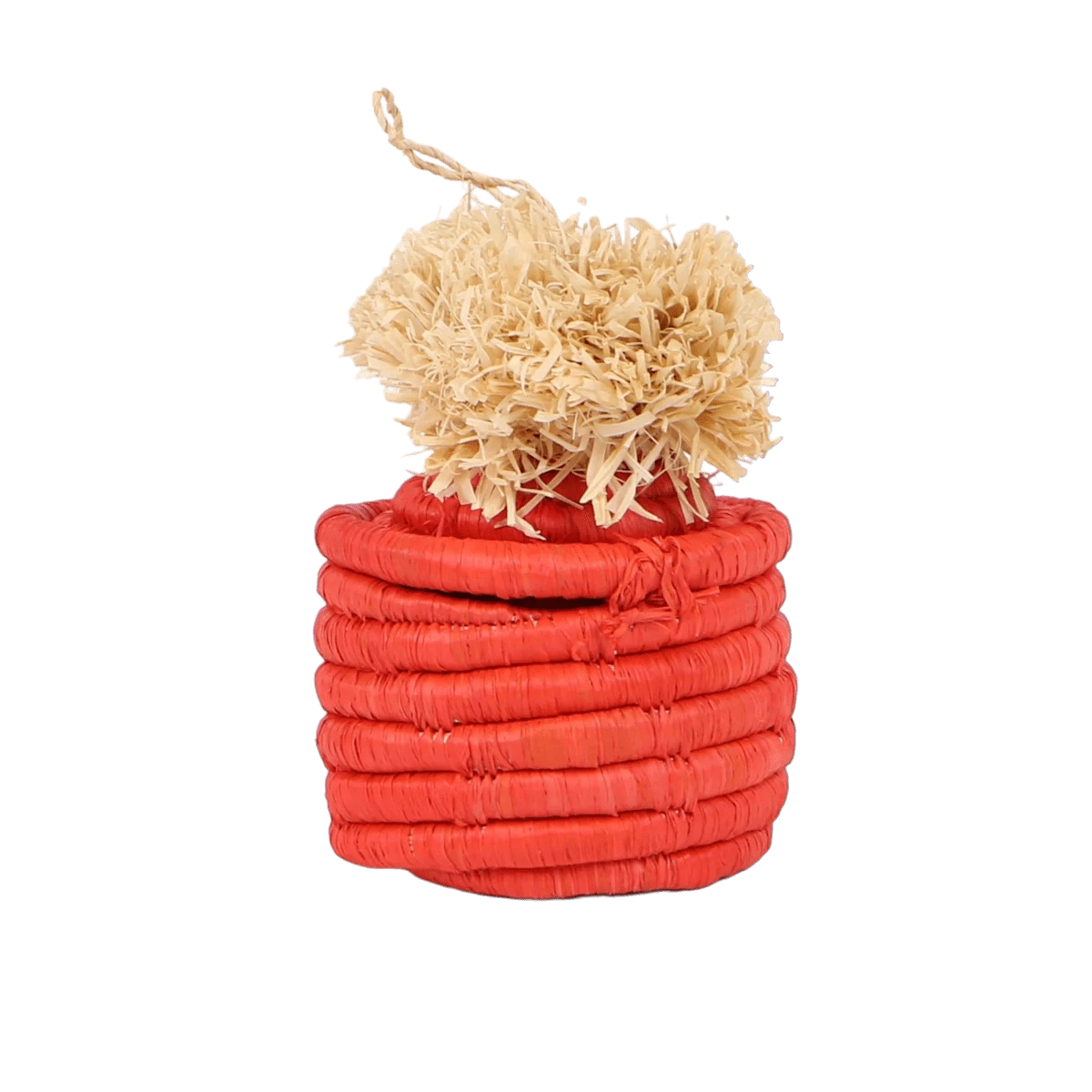 Bring festive cheer to your holiday decor with our Jolly Red Pom Pom Basket Ornament! This imaginative, colorful, and sentimental raffia ornament makes decorating fun and adds a globally-inspired decorative flair with its all natural fiber design. Plus, it was ethically and fairly made by groups of women in Uganda – win-win!