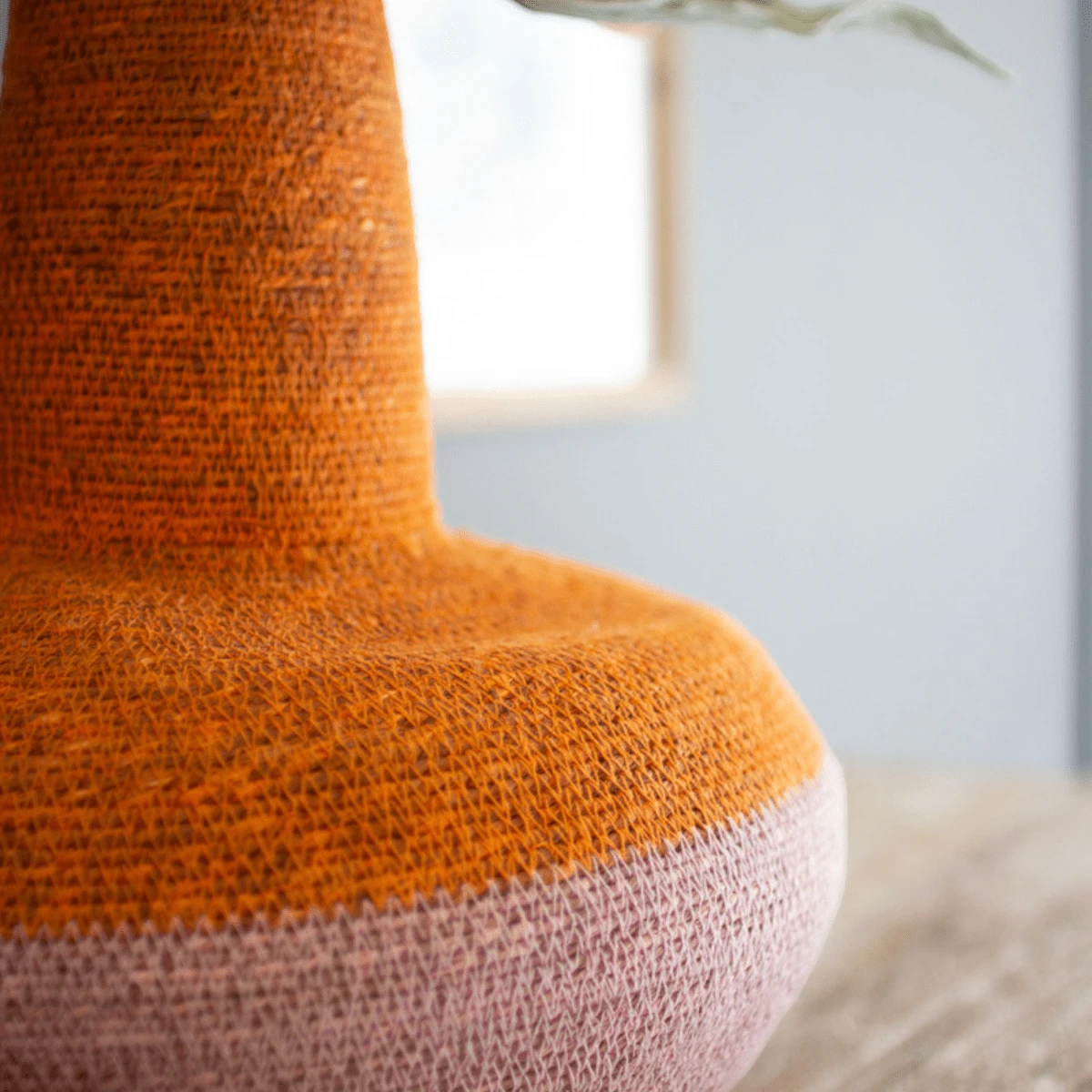 This unique 16″ tall seagrass basket features an eye-catching orange and pink striped pattern. Handcrafted in India, this vibrant basket will be a colorful addition to any home or collection. Place it in your seventies shop for a funky, fun touch.