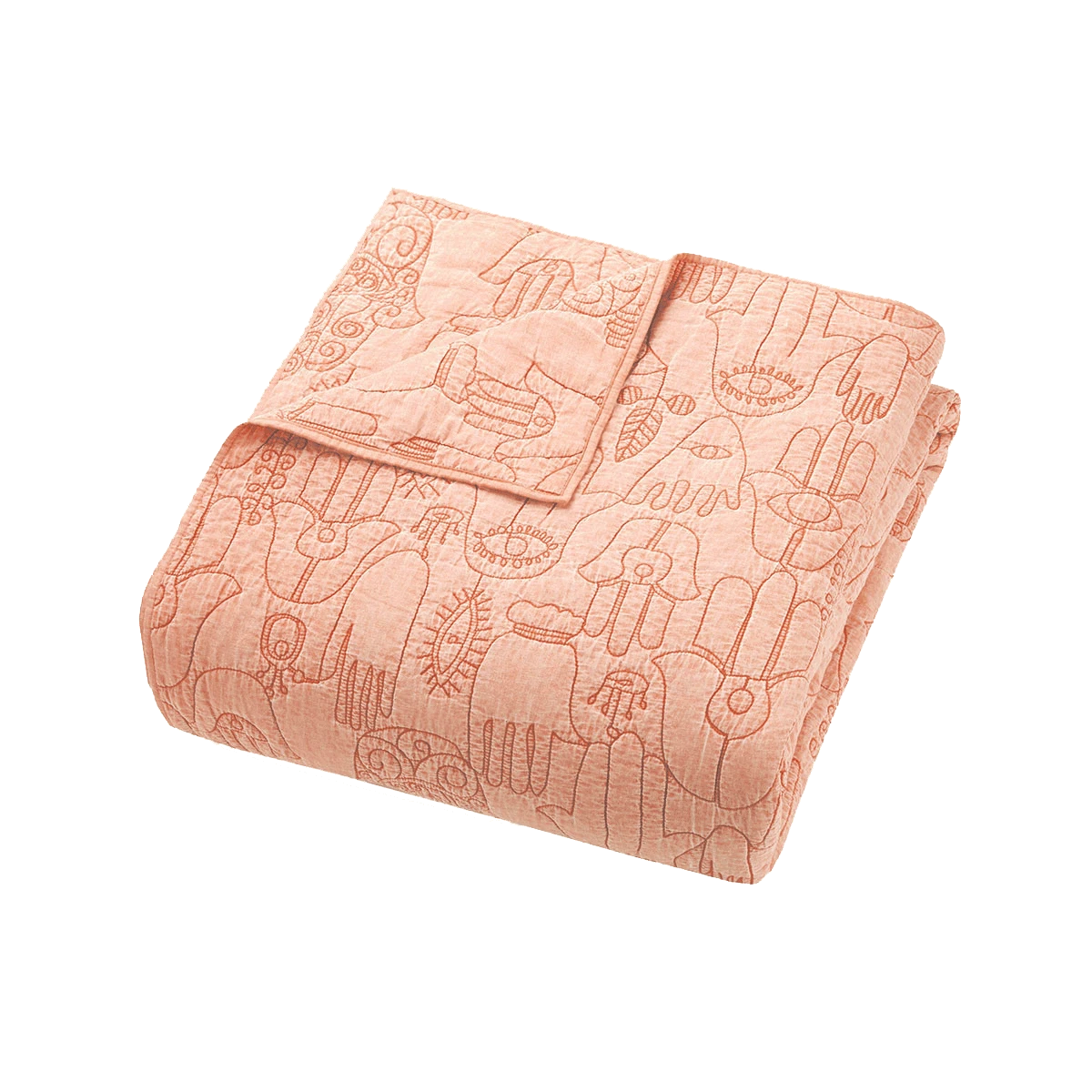 This mega-cozy, stone washed quilt set is adorned with embroidered, hand-drawn illustrations of hamsas from Justina’s own hamsa amulet collection from on her global escapades. The hamsa, also known as the Hand of God or the Hand of Fatima, is an ancient amulet symbolozing protection, happiness, luck, health and good fortune.