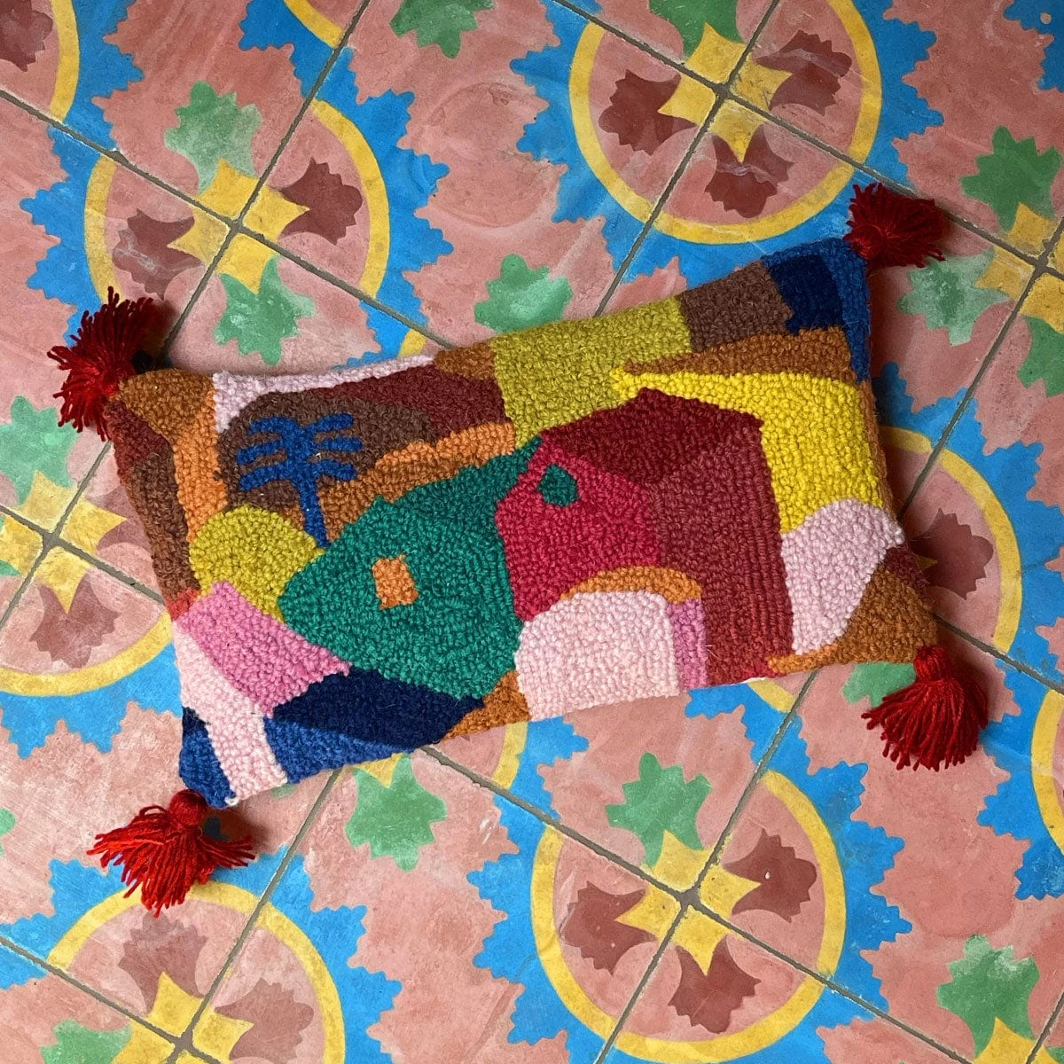Take a trip to the countryside without ever leaving your home with the Village Hook Pillow designed by Jungalow. This charming, colorful village couldn’t be cuter. Your inner explorer will thank you for bringing bold color, fun tassels, and a sense of adventure home!